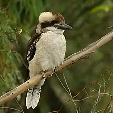 - A kookaburra of species Dacelo novaeguineae, native to eastern Australia and famed for its loud laugh-like call.