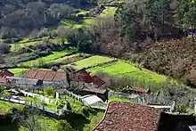 - damus e outorgamus a uos [...] Ia leyra derdade que abemus en Eires como departe pe-la leyra do casal de Cima de Villa en o qual mora Domingo Eanes, e da outra parte pe-los marcos que y estan chantados, e da outra parte pe-la careyra, e da outra parte pe-la pedra que esta en fondo desta leira; conuen a saber que vos fazades esta leira Ia cassa pera lagar e non fazades en ela outra casa nenuna nen poombal, nen tolades o carril da uila