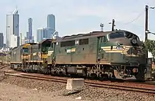 - (rail transport) a locomotive (self-propelled vehicle that runs on rails)