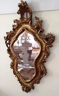 - (dated) Synonym of mirror (“smooth surface that reflects light so as to give an image of what is in front of it”). [from 1520s]