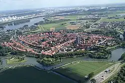 Aerial photograph of Brielline fortification with Saint Catherine church