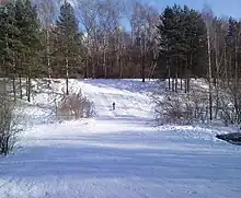 - A snow-covered slope used for recreational sledding; a toboggan slide, sledging hill