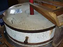 From Old Galician-Portuguese moo, from Latin mola.
