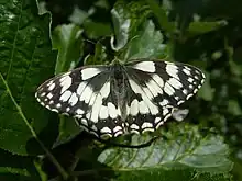 - The large black-and-white chequered butterfly Melanargia galathea, of the family Nymphalidae.