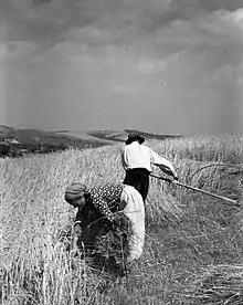 - (folksy) bundle (a fistful of wheat when harvesting with sickles or scythes; the bundles are tied into sheaves using straw)
