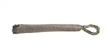 - (Caribbean) A yuca strainer or press (sebucan) in the form of a tube of basketry hung from a hook and compressed by stretching the lower end with a pole, used for expressing prussic acid out of yuca pulp.