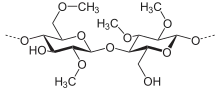 - (organic chemistry) A white powdery substance, obtained by the methylation of cellulose, that swells in contact with water to form a gel; it has many industrial applications.