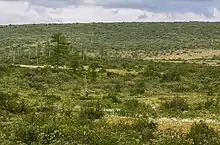 - (geography) forest tundra (transitional zone between the taiga and tundra)