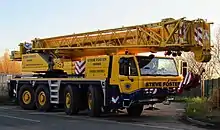 - A crane of varying size and load capacity, usually mounted on road wheels, but sometimes on crawler tracks, which can move to wherever it is required.
