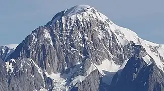 Literally, “white mountain”. Cognate to Italian Monte Bianco.