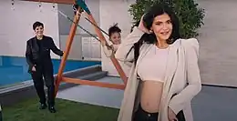 Two well-known mumfluencers: Kylie Jenner (right) and her mother Kris (left), with Kylie's daughter (on swing).