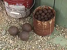 - (firearms, historical) A spherical projectile suitable for firing from a musket.