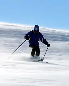- (skiing) skiing (group of sports utilizing skis as primary equipment)