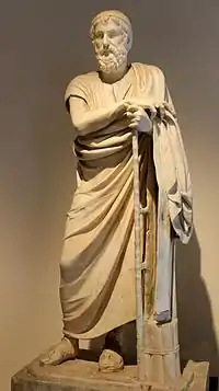 A statue of the semi-legendary Greek author Homer from the Villa of the Papyri in the ancient Roman town of Herculaneum, now in the collection of the Naples National Archaeological Museum in Naples, Italy. In Homer’s Odyssey (book IV, line 221), Helen of Troy places a nepenthes (sense 1) into some wine.