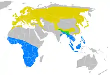 northern house martin range (in yellow), Nepalese (in green), Asian (in blue)