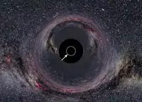 - (astrophysics) event horizon (border of the spherical region around a black hole from which nothing, not even light, can ever escape)