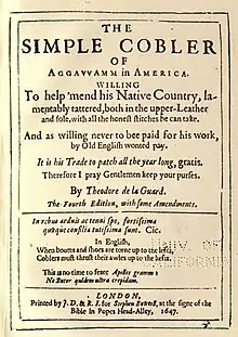 - 1647, Theodore de la Guard [pseudonym; Nathaniel Ward], The Simple Cobler of Aggawam in America. […], London: […] J[ohn] D[ever] & R[obert] I[bbitson] for Stephen Bowtell, […], →OCLC, pages 24–25: