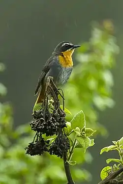 - a bird of the genus Cossypha,[3] especially a Cape robin-chat (C. caffra, syn. Dessonornis caffer)[4]