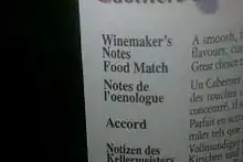 Example of the spelling oenologue used on a bottle of red wine.