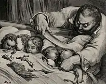 Borrowed from French ogre, from Latin Orcus (“god of the underworld”), from Ancient Greek Ὄρκος (Órkos).