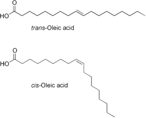 Isomers of oleic acid.