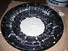 Oobleck on a subwoofer. The force of the sound waves causes the non-Newtonian fluid to thicken.