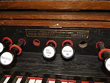 Labeled wooden organ stops