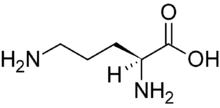 - (biochemistry, organic chemistry) An amino acid, 2,5-diaminopentanoic acid, that is not present in protein, but is an intermediate in the biosynthesis of urea.
