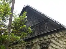 - (architecture) gable (the triangular area of external wall adjacent to two meeting sloped roofs)