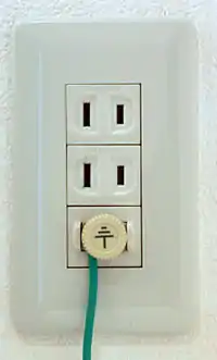 - A wall-mounted socket connected to an electrical power supply, at which current can be taken to run electrical devices.