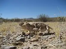 - horned lizard, horny toad, any lizard of the genus Phrynosoma