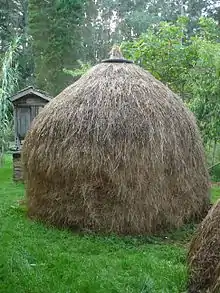 - conical haystack, assembled so as to preserve the hay from wind and rain