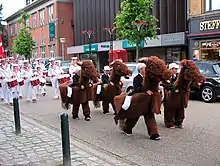 - A public procession, especially one commemorating a holiday or special event or (dated) in protest.