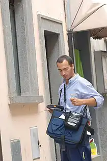 - postman, mailman (male postal worker who delivers mail to residential and commercial addresses)