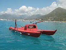 - (nautical) a type of recreational watercraft consisting of two parallel floaters joined together, propelled by oars
