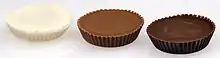 White chocolate, traditional milk chocolate, dark chocolate cups