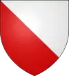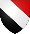 Left: party per bend, argent and gules. Right: tierced per bend, gules, argent, and sable.
