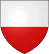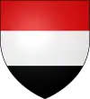 Left: party per fess, argent and gules. Right: tierced per fess, gules, argent, and sable.