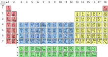 Color of the number (state of matter at STP): liquid, gas, solid, solid (synthetic), not yet been discovered | 2 He | |||||||||||||||||