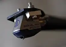 - The component attached to the end of the tone arm of a phonograph turntable that holds the stylus.