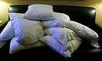 From Middle English pilwe, from Old English pylwe, pylu, pyle (“pillow”), from Proto-West Germanic *pulwī (“pillow”), from Latin pulvīnus (“cushion”), derived from pulvis (“dust, powder”) + -īnus (“-ine”), for the filler of a pillow. Doublet of pulvinus.
