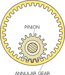 - The usual front sprocket has teeth, which which mesh into a pinion on a shaft that carries power to the wheel through a pair of pinions at the rear.