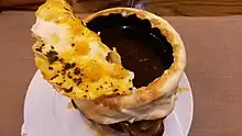 - An Azerbaijani soup made with mutton and vegetables in individual crocks with a glazed interior.