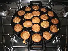 Poffertjes in een speciale pan. ― Small pancakes in a special pan.