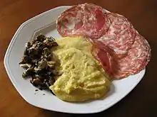 - Any of various types and consistencies of a starchy accompaniment to a meal made from coarse maize-meal porridge, sometimes fried or grilled.