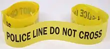 tape used as a police barricade, typically used to restrict access at the scene of a crime