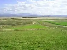 Borrowed from Serbo-Croatian pȍlje (“field”).