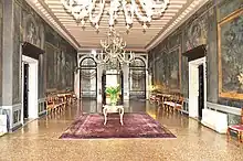 The portego of Palazzo Morosini Sagredo terminates with the monumental staircase designed by Andrea Tirali.