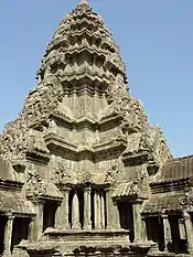 - (architecture) A type of tower or spire featured in some Buddhist temples of Cambodia and Thailand.