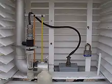 - (meteorology) Any of several instruments used to measure the relative humidity of the atmosphere; especially a wet-and-dry-bulb hygrometer.